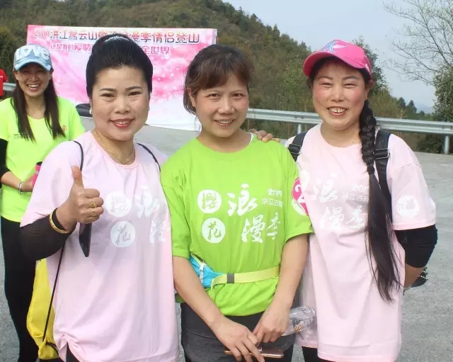 志愿者在情侣登山比赛中与参赛选手合影