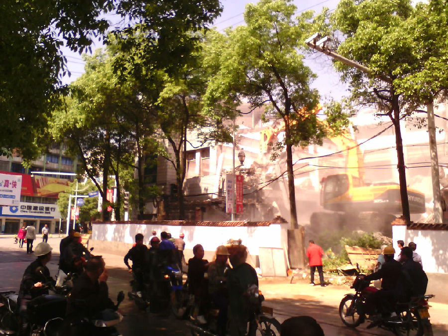 5月1日,在大型挖掘机的轰鸣声中,为洪江人民服务了近半世的百货大楼被拆除。在五十年里,百货大楼见证了洪江经济的浮沉,成为洪江地标性建筑物。如今,随着我区古商城项目旅游开发的加速,一座全新、多功能游客接待中心将会在此拔地而起,这里又将会成为新的洪江旅游地标性建筑物。