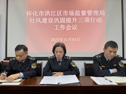 2025年11月3日,怀化市洪江区市场监督管理局召开行风建设巩固提升工作会议,深入贯彻落实总局关于行风建设部署要求,全面总结行风建设成效,部署下一阶段重点任务,为市场监管事业高质量发展提供坚实行风保障。