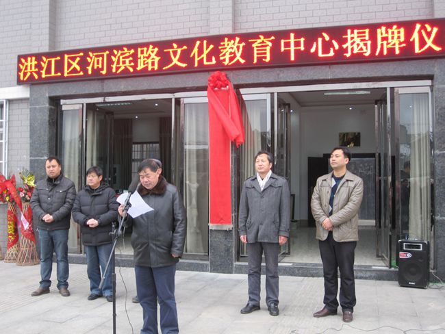 揭牌仪式由区教育局局长倪仁常主持。仪式上河滨路街道工委书记瞿亘发表了热情洋溢的讲话,他指出,河滨路文化教育中心的落成并投入使用是街道项目建设中的一件大事,也是振奋人心的一件喜事,更是各级领导高度关心、各级部门大力支持、河滨路街道上下共同努力的结果。对于完善街道文化阵地建设,提高居民生活质量,丰富广大居民精神文化生活具有十分重要的意义。