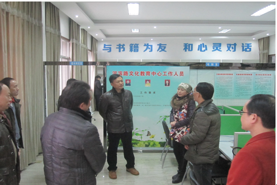 近日,湖南省文化厅党组副书记、常务副厅长禹新荣一行到怀化市洪江区河滨路街道视察文化教育中心设情况。省文化厅领导一行在河滨路街道文化教育中心,仔细察看了街道文化教育中心基础设施、教育文化中心管理制度等情况,并向街道分管领导和文化中心管理员详细询问了街道辖区内居民到教育文化中心来看书、上网、打乒乓球等情况,了解居民读者的读书情况和阅读、居民上网和打乒乓球等方面的需求。省文化厅视察人员一行对街道文化教育中心建设情况给予了充分肯定。怀化市文化局、洪江区工委、管委领导陪同视察。