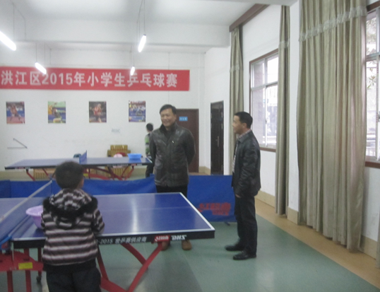 图为:省文化领导视察街道文化教育中心乒乓球室