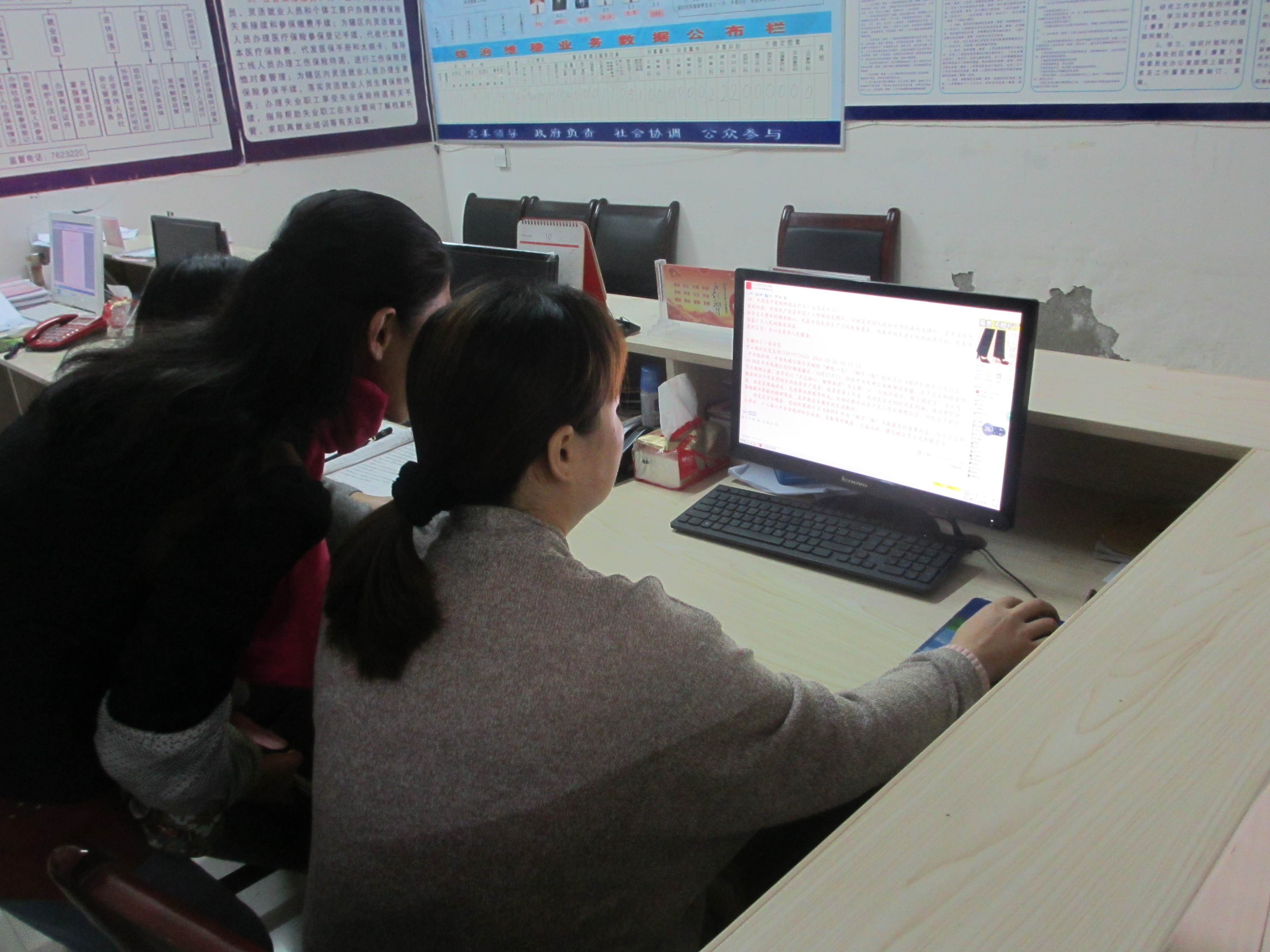 图为:社区工作人员通过qq群了解工作
