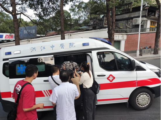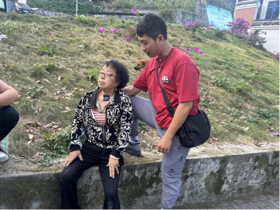 工作人员一边轻声询问状况,一边快速检查伤情,随即拨打120求助。等待期间,他们始终守护在旁,柔声安抚:“我们一直在这里陪着您。”