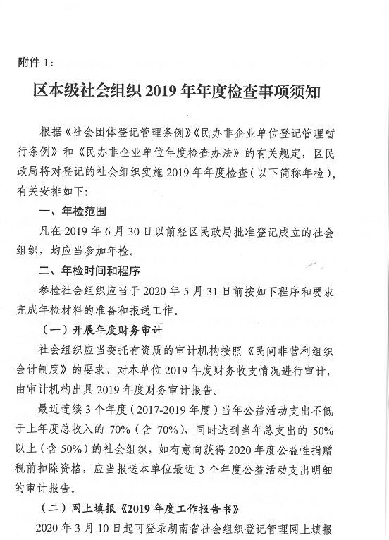 关于开展区本级社会组织2019年度检查工作的通知