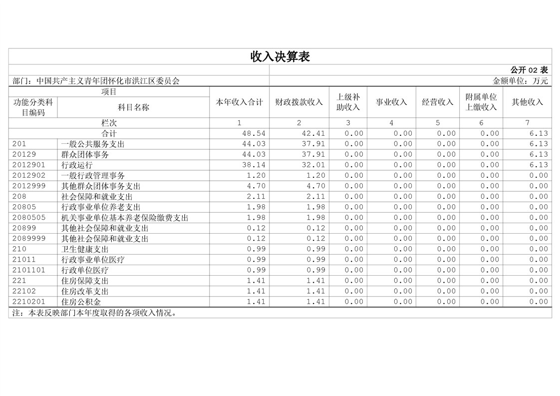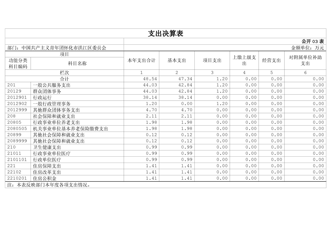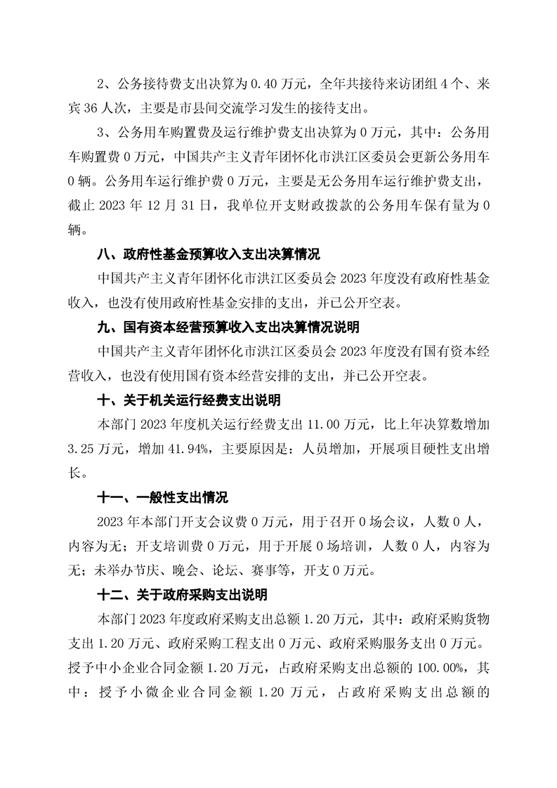 中国共产主义青年团怀化市洪江区委员会2023年部门决算公开说明