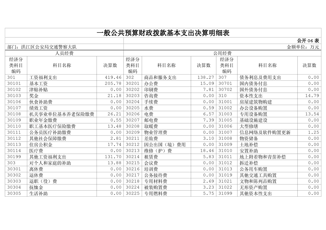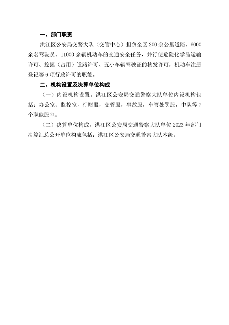 洪江区公安局交通警察大队2023年部门决算公开说明