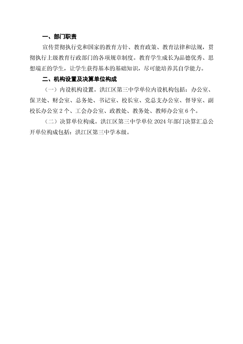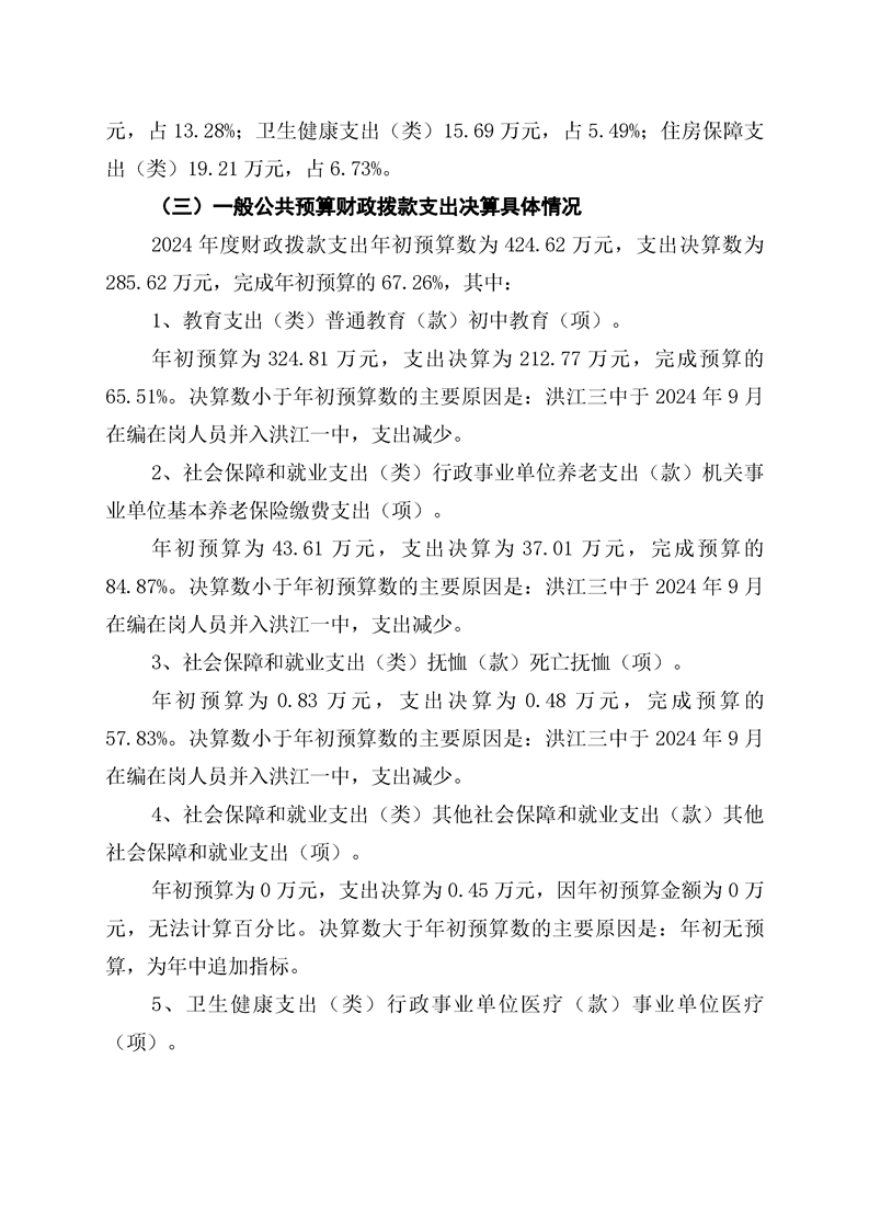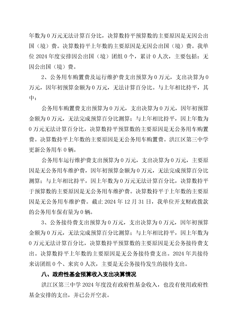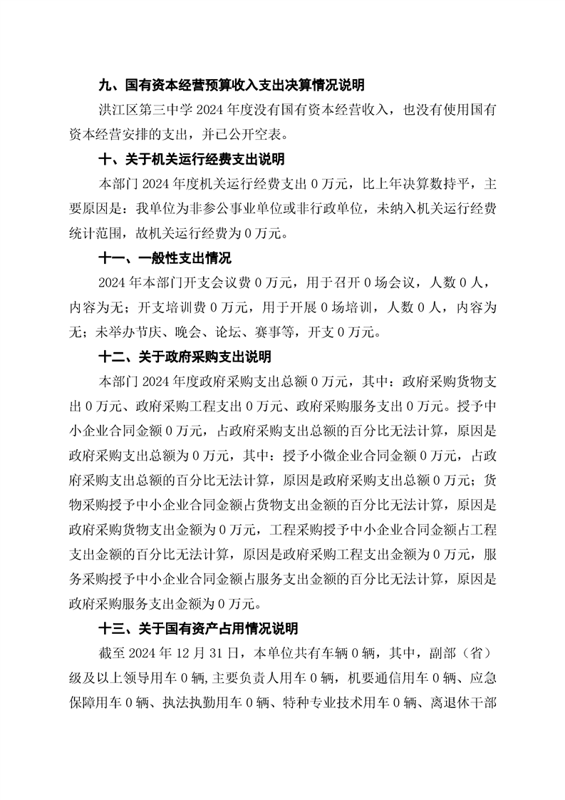 洪江区第三中学2024年部门决算公开说明