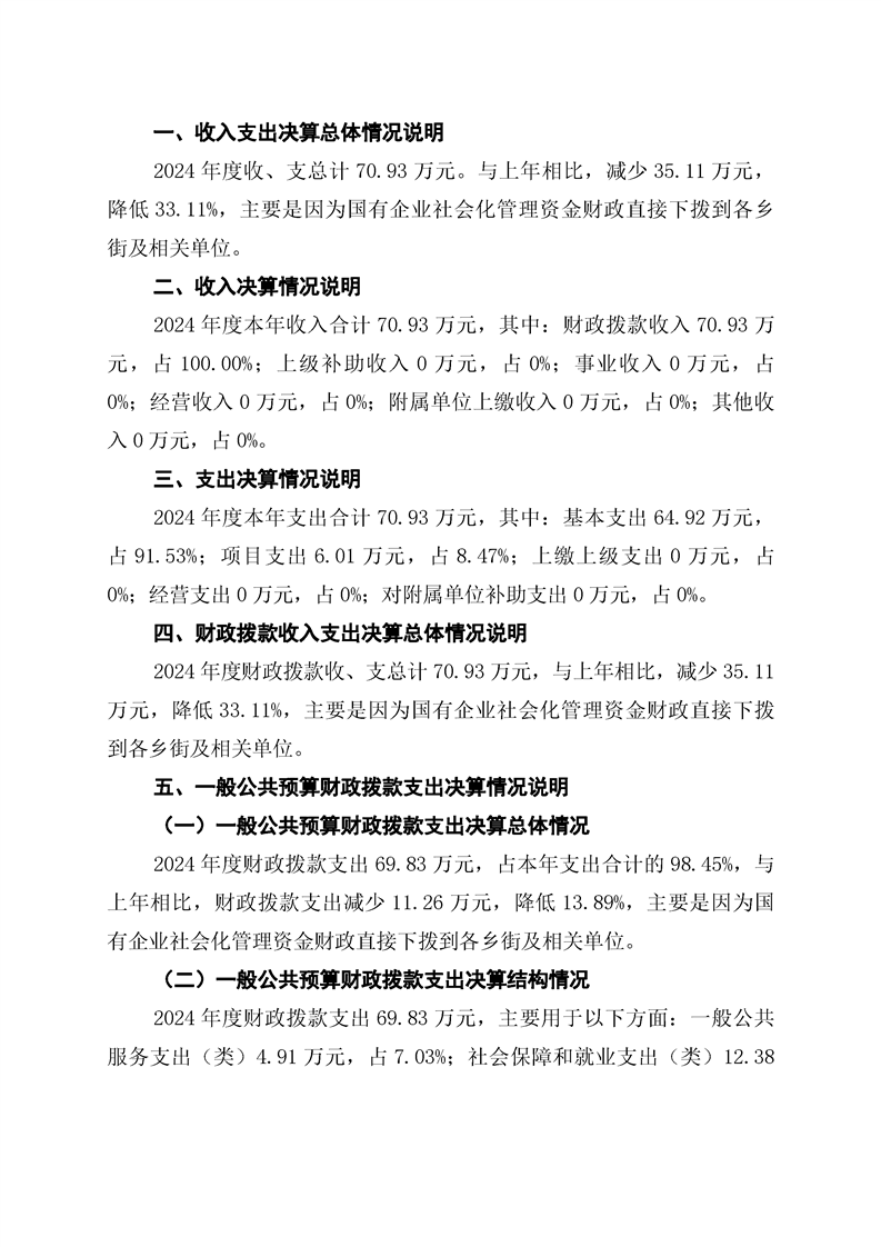 洪江区企业改制服务办公室2024年部门决算公开说明