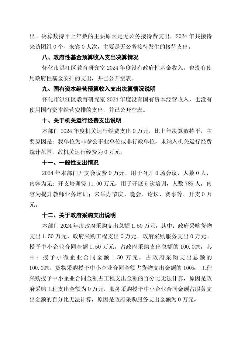 怀化市洪江区教育研究室2024年部门决算公开说明