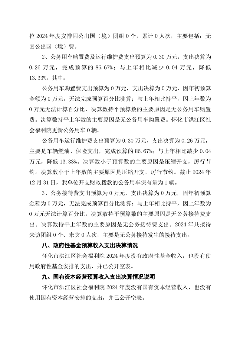 怀化市洪江区社会福利院2024年部门决算公开说明