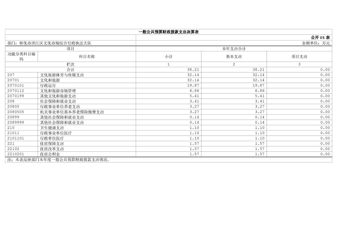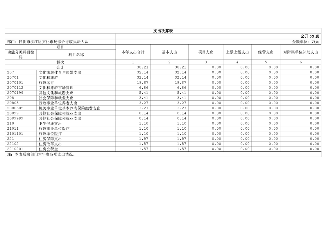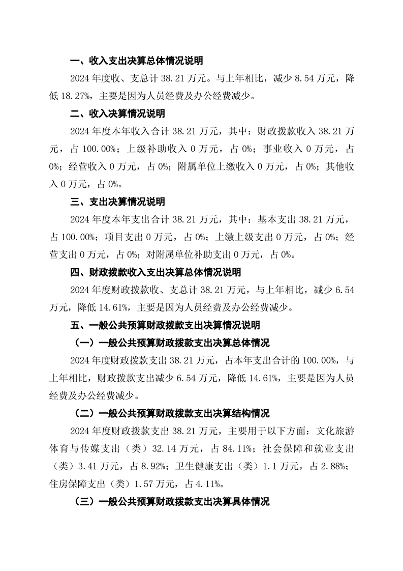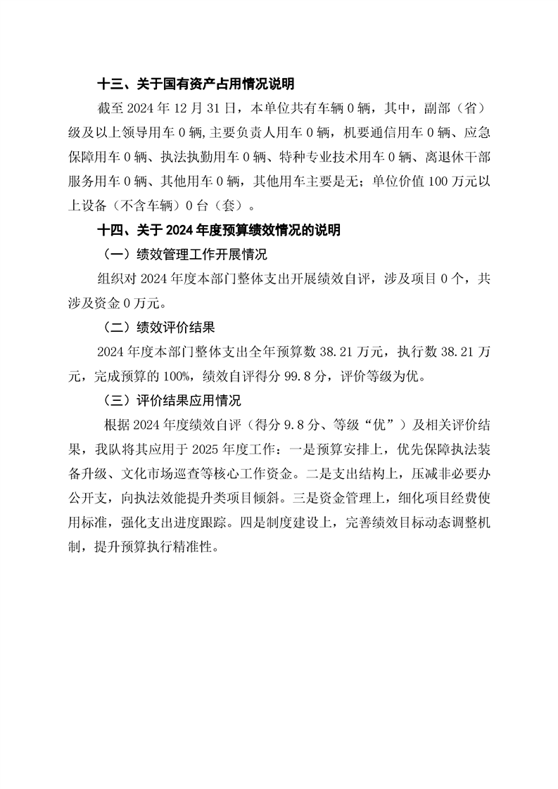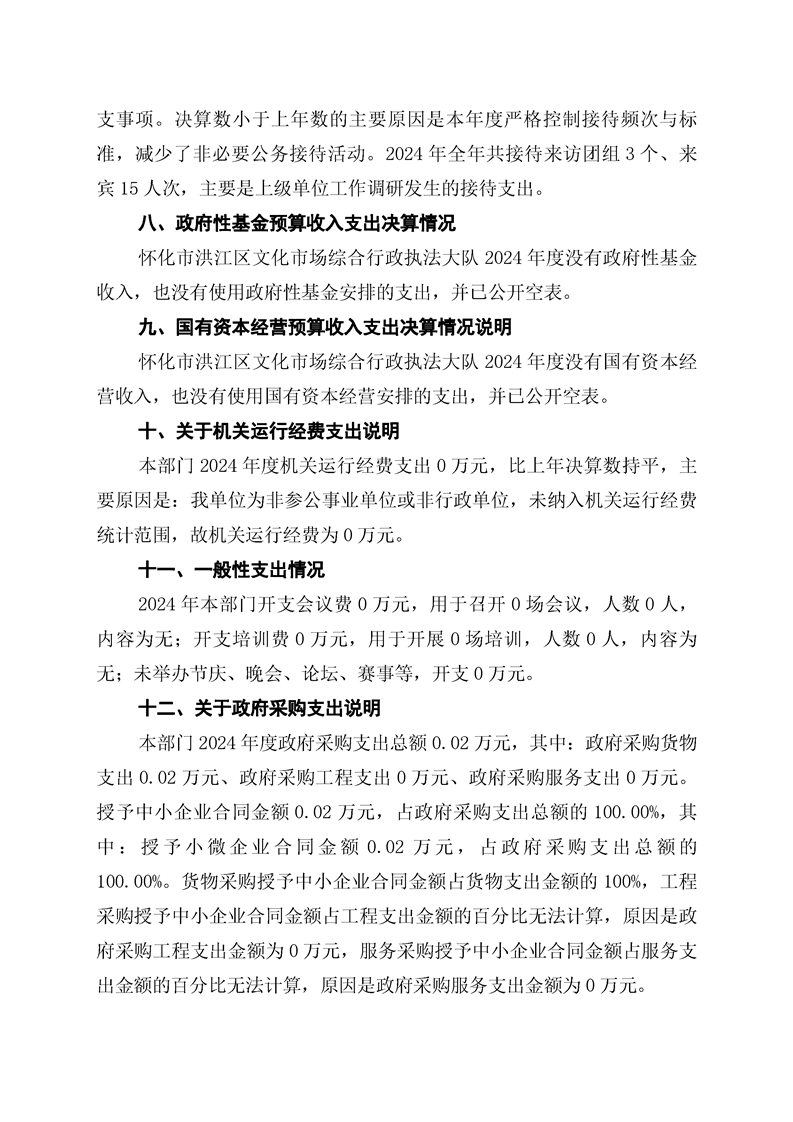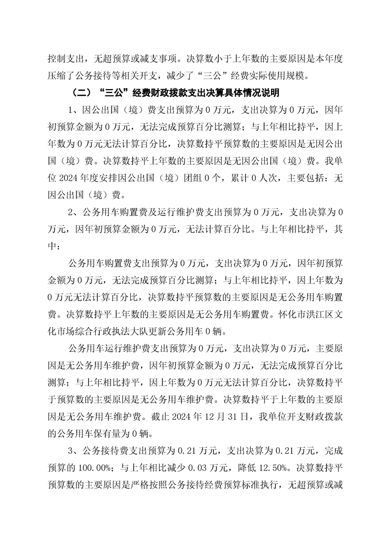 怀化市洪江区文化市场综合行政执法大队2024年部门决算公开说明