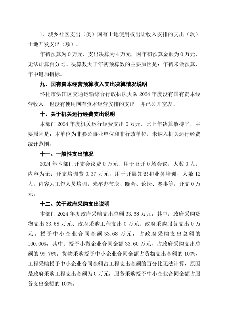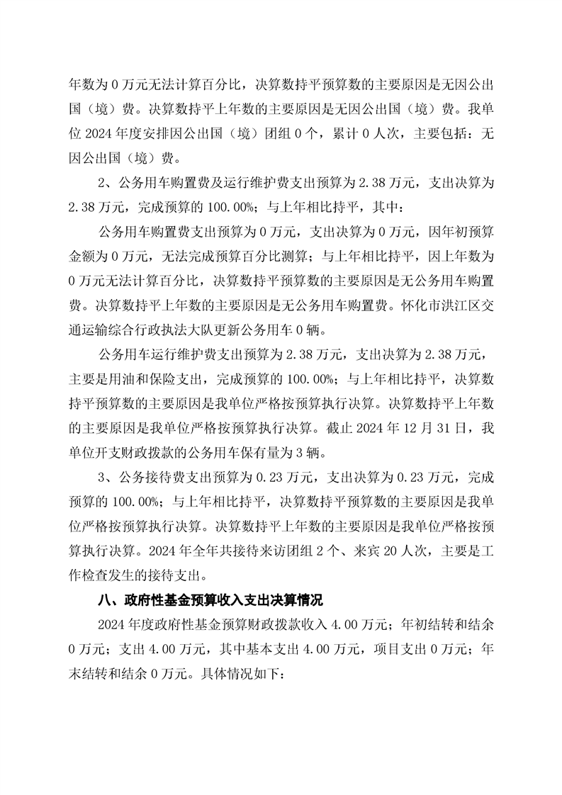 怀化市洪江区交通运输综合行政执法大队2024年部门决算公开说明