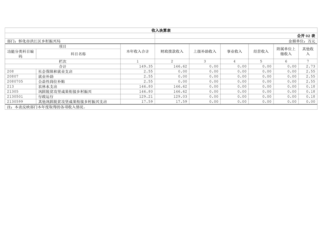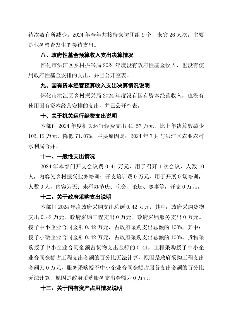 怀化市洪江区乡村振兴局2024年部门决算公开说明