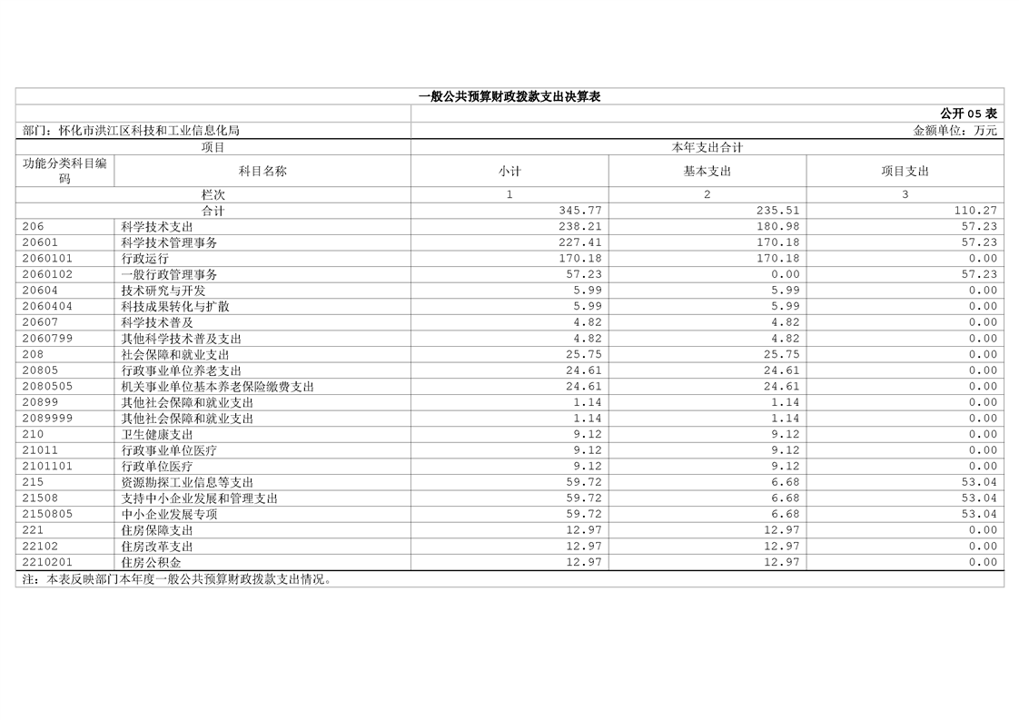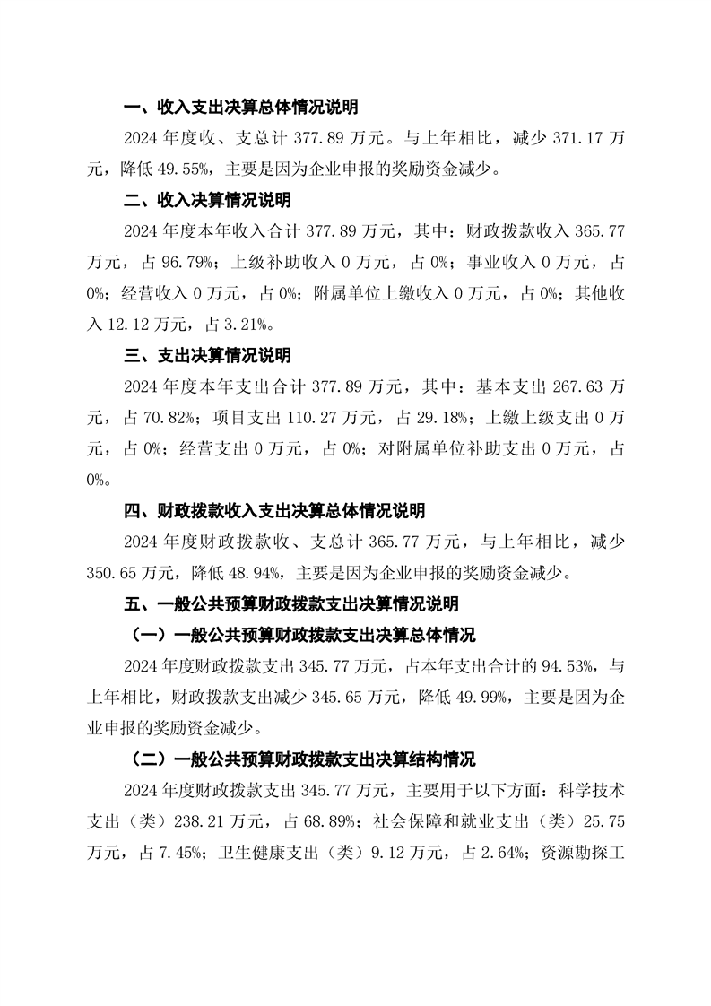怀化市洪江区科技和工业信息化局2024年部门决算公开说明