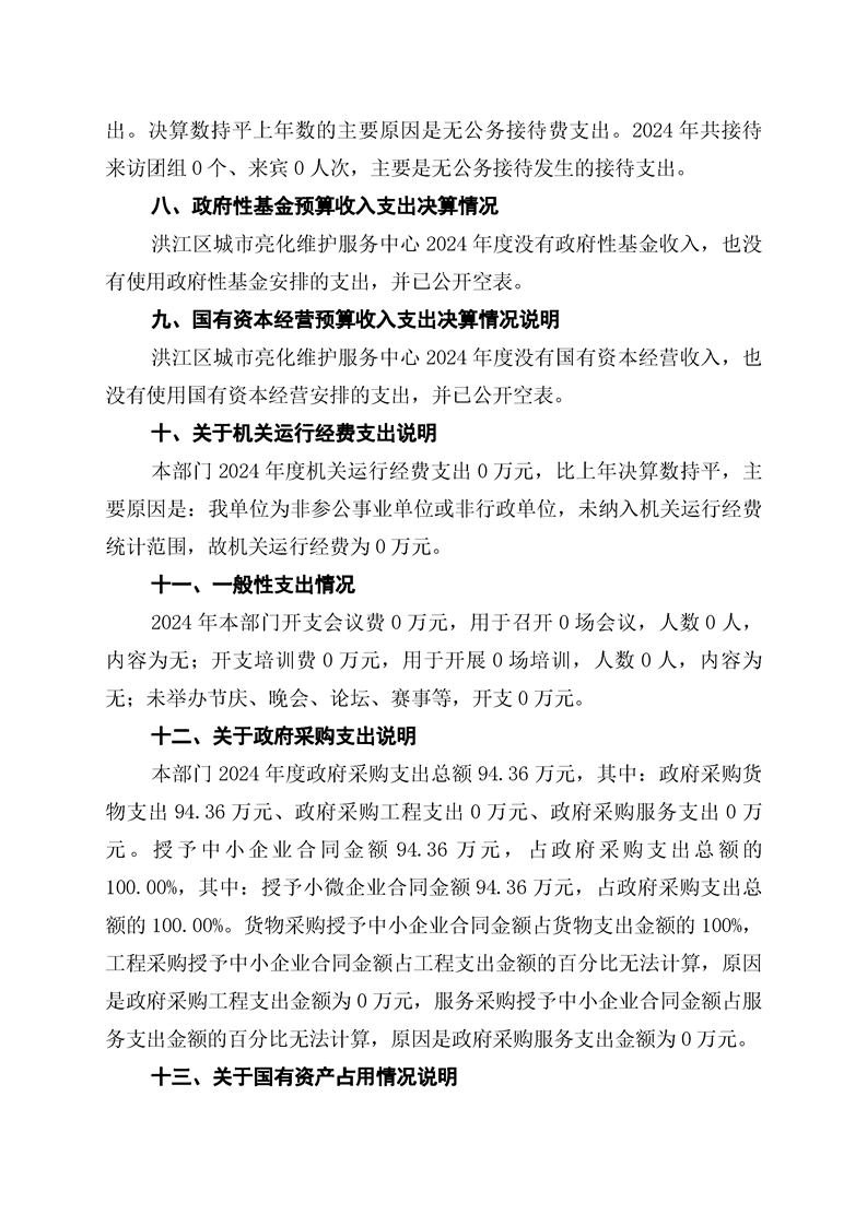 洪江区城市亮化维护服务中心2024年部门决算公开说明