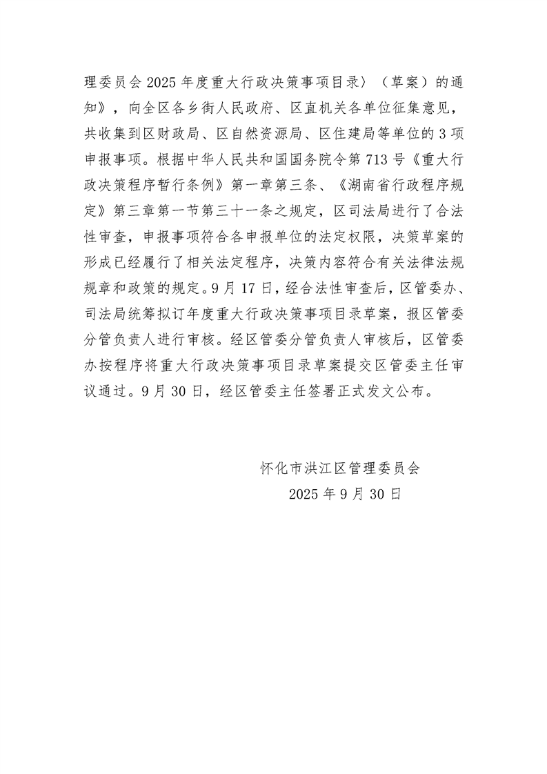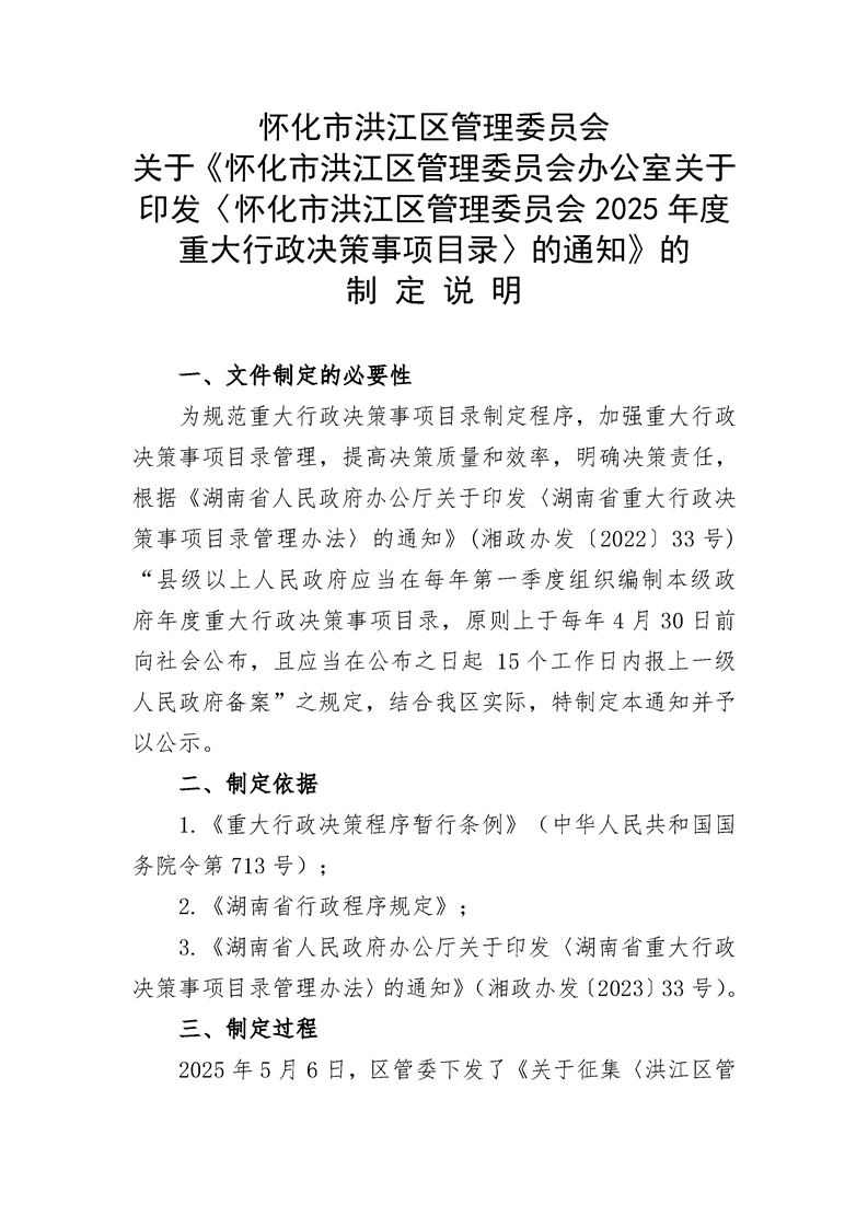 怀化市洪江区管理委员会关于《怀化市洪江区管理委员会办公室关于印发〈怀化市洪江区管理委员会2025年度重大行政决策事项目录〉的通知》的制定说明