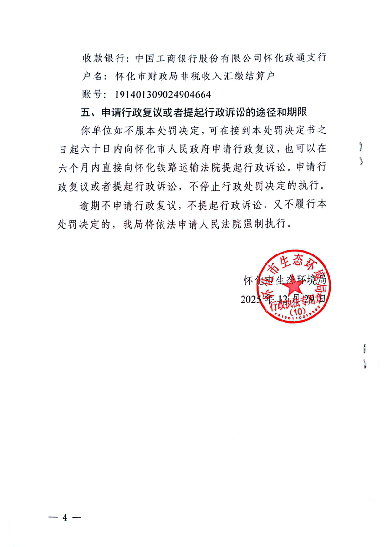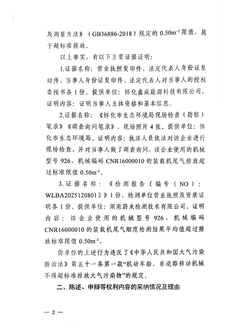 怀化鑫成能源科技有限公司行政处罚决定书