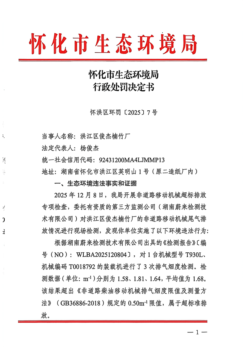 洪江区俊杰楠竹厂行政处罚决定书