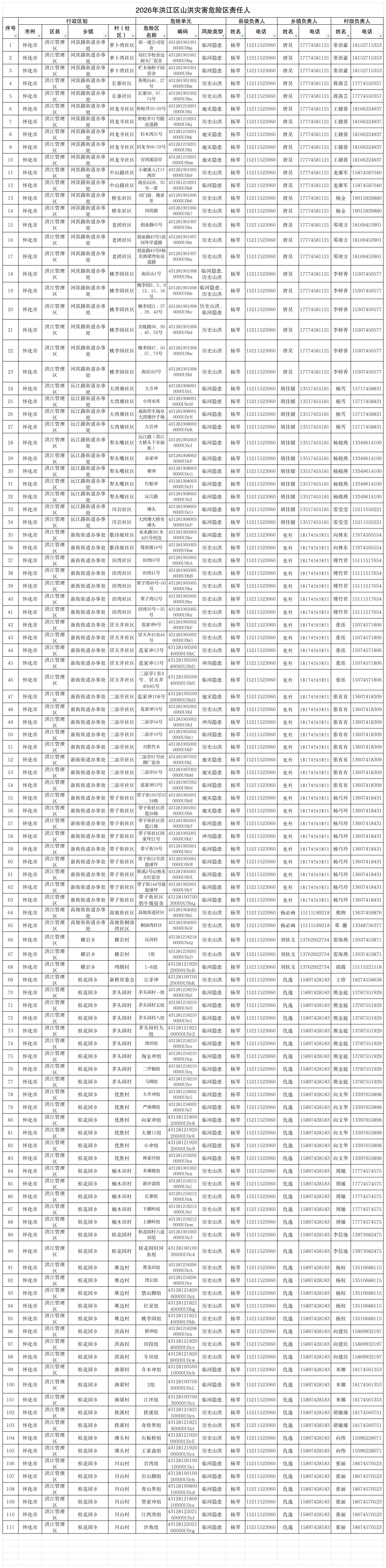 2026年洪江区山洪灾害危险区责任人