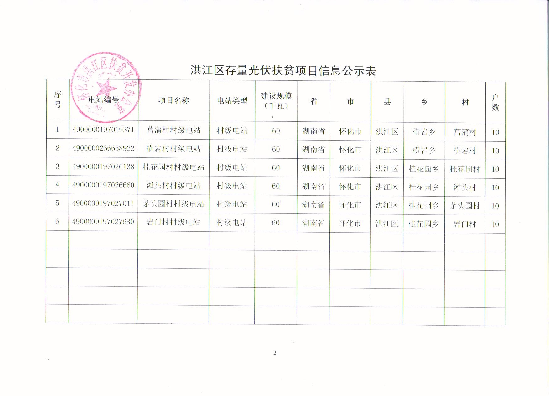洪江区已纳入财政补助目录及存量光伏扶贫项目信息公示