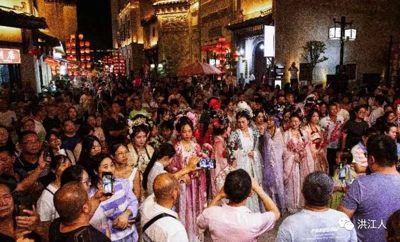 中秋国庆假期,洪江古商城举行十二花神秀、放河灯、拜月神、吃月饼、猜灯谜等系列游园活动,增强游客互动体验和节日氛围。夜间,“‘十一’红歌会” “一代洪商”沉浸式夜游演艺轮番上演,绚丽夺目的夜景、星罗棋布的3D文创光影秀,让游客看不赢、玩不停,开启“白+黑”模式畅玩洪江古商城。