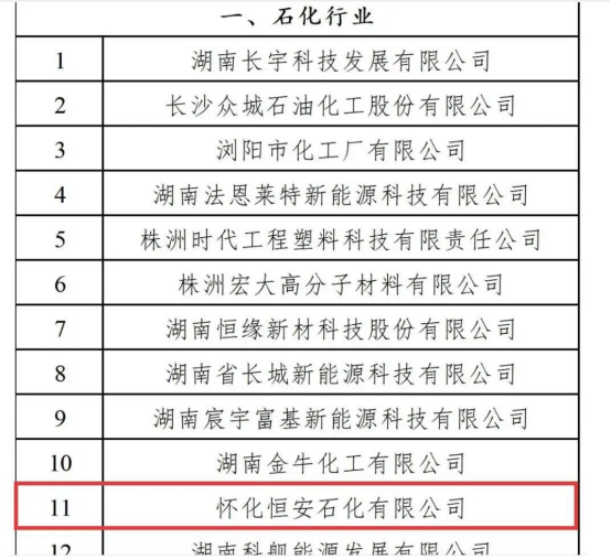 据悉,本次评选涵盖石化、有色、冶金、建材4大关键领域,共选出40家企业。在12家石化企业中,怀化恒安石化入选;18家有色企业中,沅陵山能环保入选。