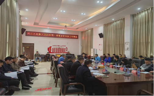 近日,洪江区高新区2026年第一季度安全环保工作例会召开。高新区管委会党政主要负责人、安环部全体干部职工、区直相关部门分管负责人以及园区众多企业主要负责人参加会议,为园区安全环保工作锚定新方向。