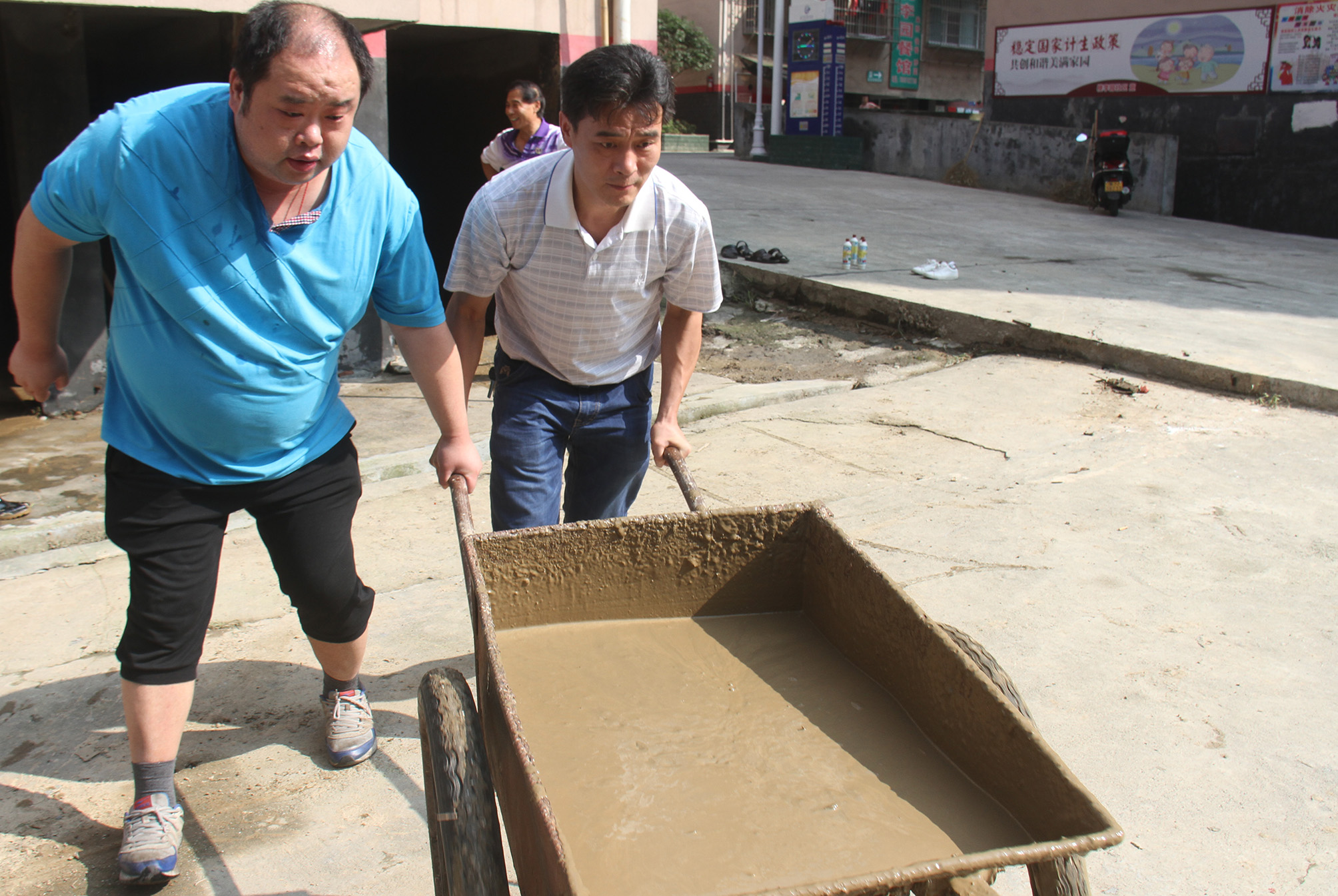 7月4日,洪江区中山路小学党员教师在为受灾居民家中清理淤泥。当天,洪江区中山路小学党支部组织30余名党员教师志愿者,自备铁铲、扫帚、铁桶、消毒液来到受灾严重的桃李园社区帮助受灾居民清理房间淤泥,冲洗地面、清洗家具、喷洒消毒液。党员教师个个忙得汗流浃背,他们用实际行动践行共产党员的四个合格。