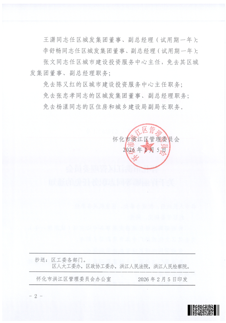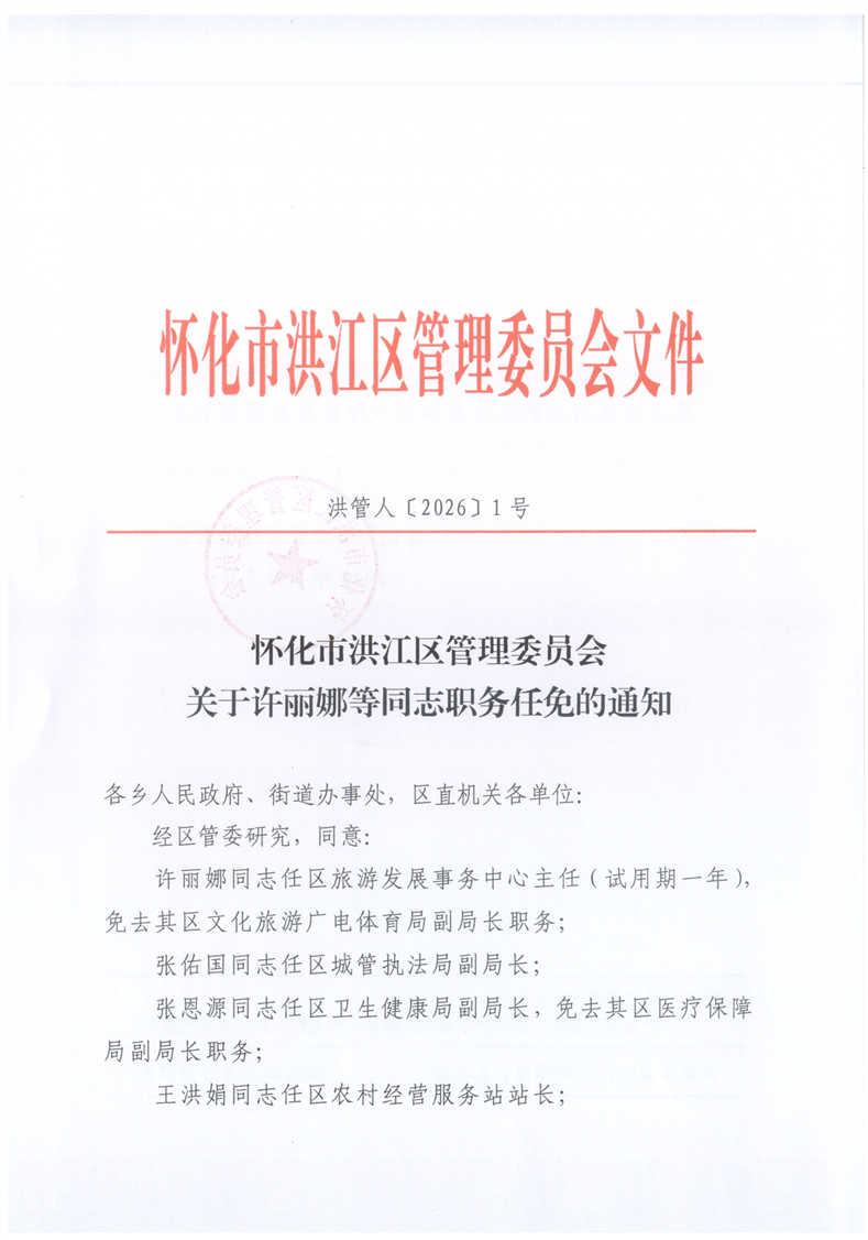 怀化市洪江区管理委员会关于许丽娜等同志职务任免的通知