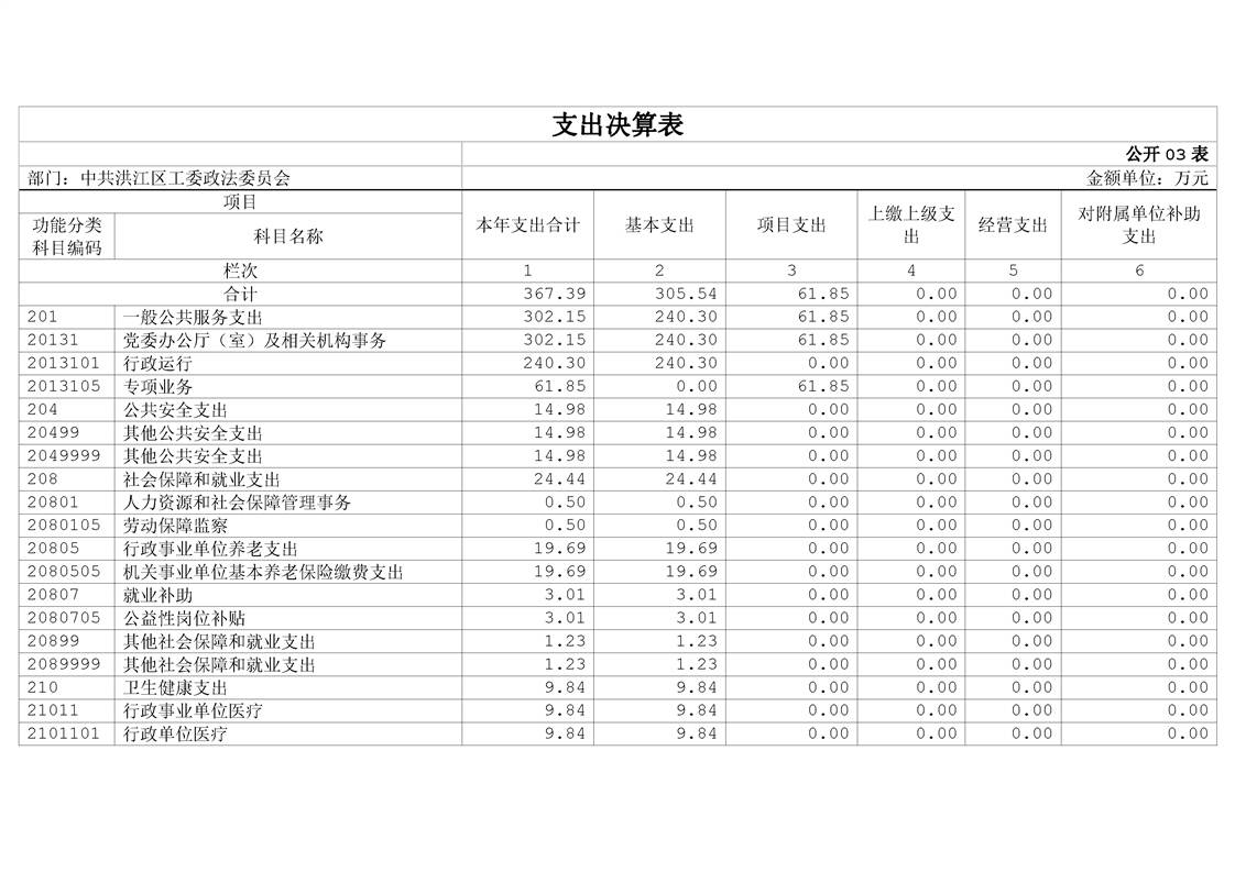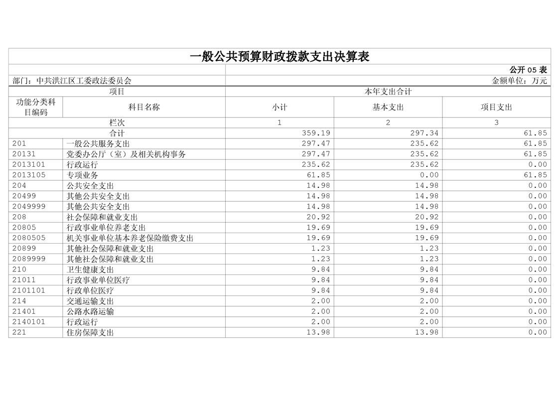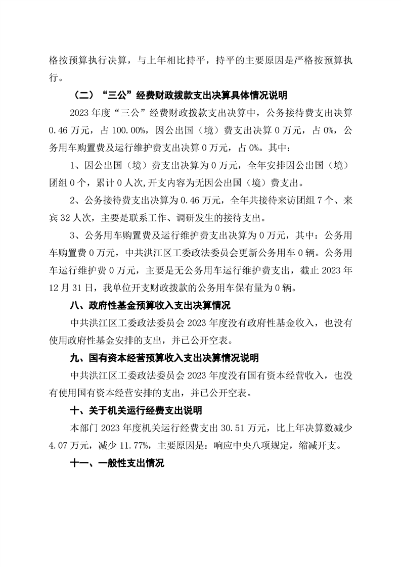 中共洪江区工委政法委员会2023年部门决算公开说明