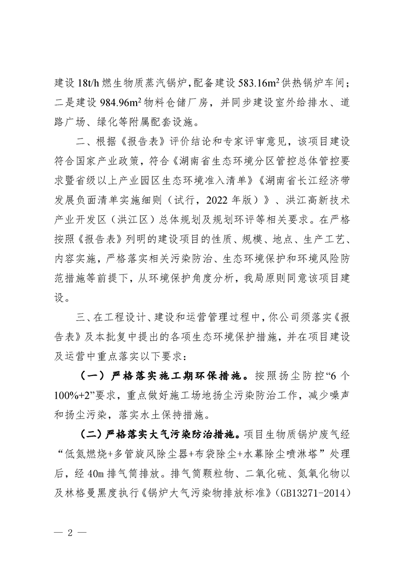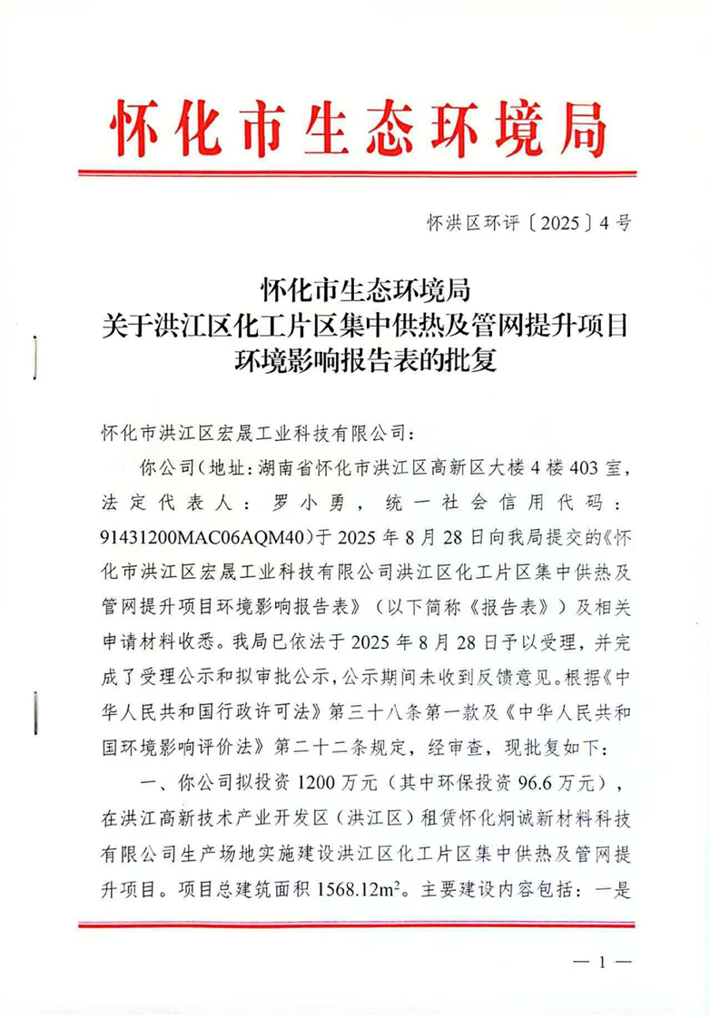 关于怀化市生态环境局关于洪江区化工片区集中供热及管网提升项目环境影响报告表的批复