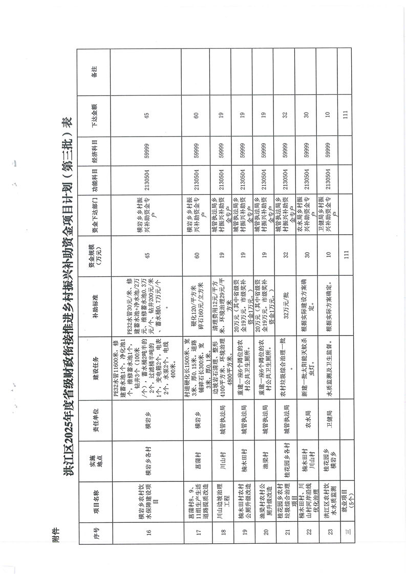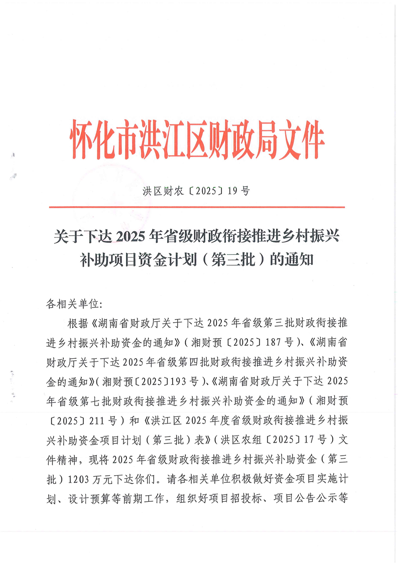 关于下达2025年度省级财政衔接推进乡村振兴补助资金项目计划(第三批)的通知